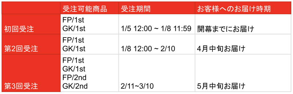 ※ユニフォームとそのほかの商品を同時に購入した場合は、受注生産品(一番発送の遅いもの)に合わせての発送となりますのでご注意ください。