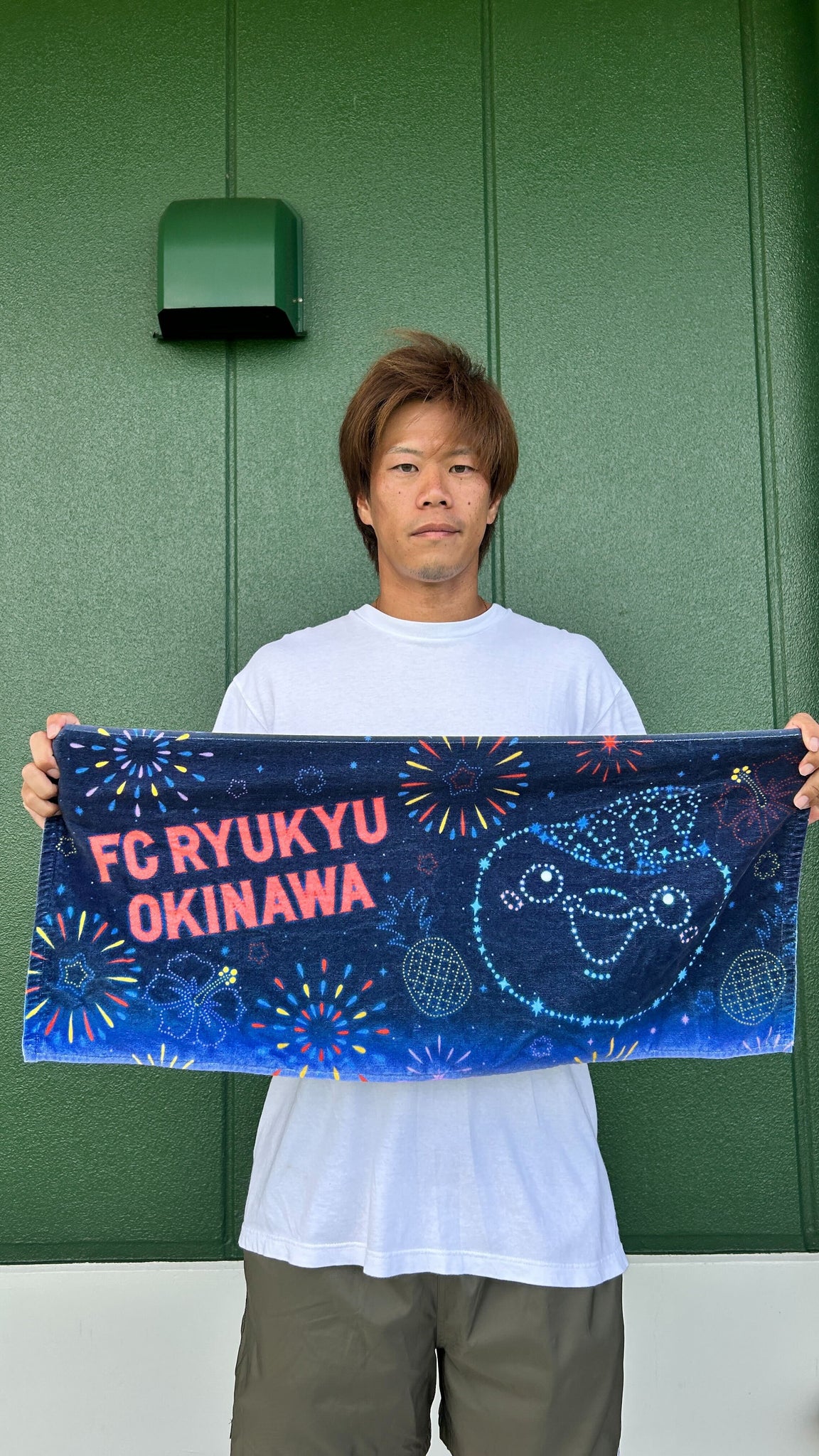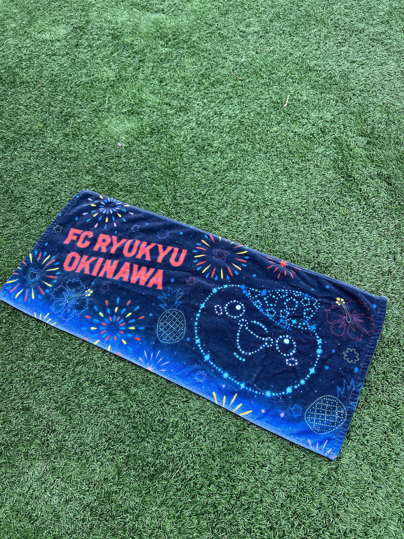 夜空に咲く花火とジンベーニョを大きくデザインしたフェイスタオルです。