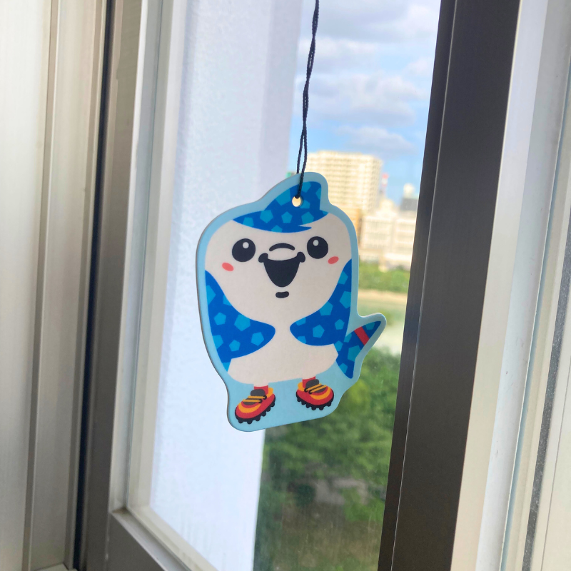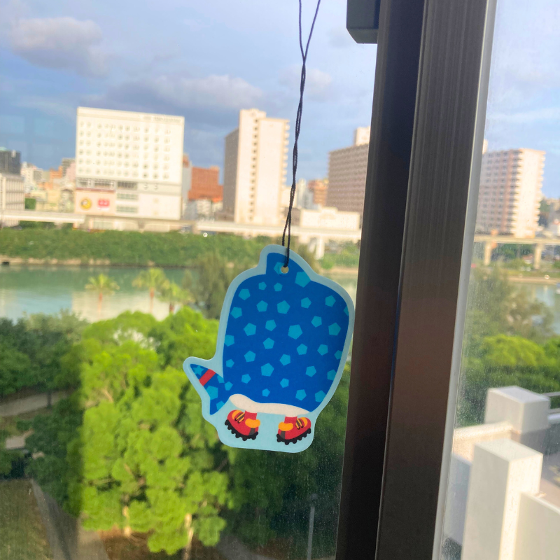 ジンベーニョがエアーフレッシュナーになって登場。車や玄関、クローゼット、トイレなどにつり下げれば、かわいいジンベーニョがアクアソープの香りで気分をリフレッシュしてくれます。(紐付き)